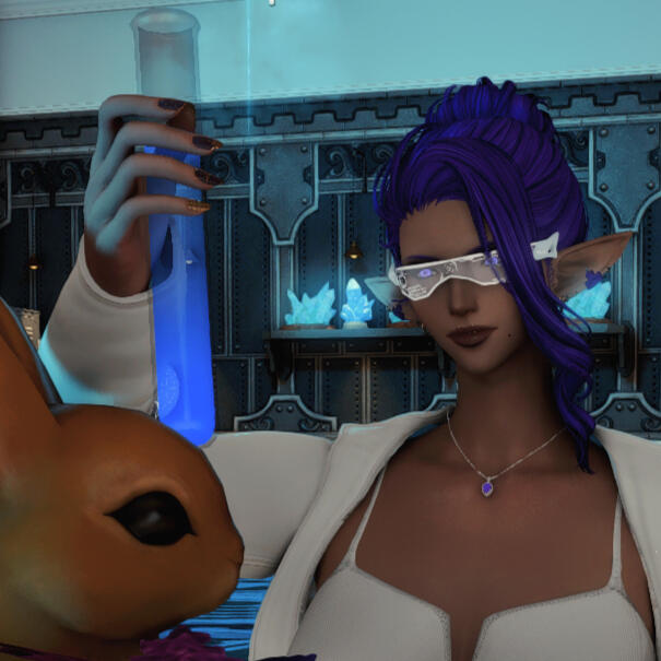 Though she's blind and still not quite accustomed to Eorzean culture, Seseiba's more than skilled enough to help the cafe out during its busy periods. When not busy, the banter between her and Glitchy might just give our guests some extra entertainment to go along with their meals.